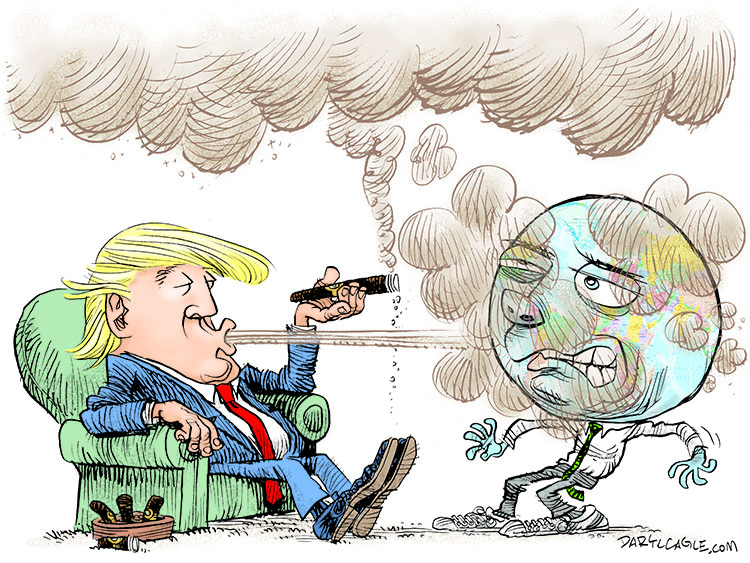 [00:04:29] Daryl Cagle: in looking through the cartoons for this, I noticed that there was a lot more passion for environmental cartoons when Trump was in office. And a good deal when George W. Bush was in office and a whole lot of cartoons that depict, columns on buildings as, smokestacks or, pipes exuding waste.