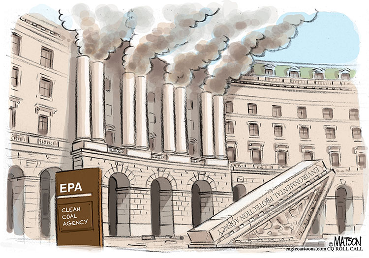 [00:04:08] Daryl Cagle: okay. Here’s the Environmental Protection Agency, with their columns exuding, polluting smoke.
