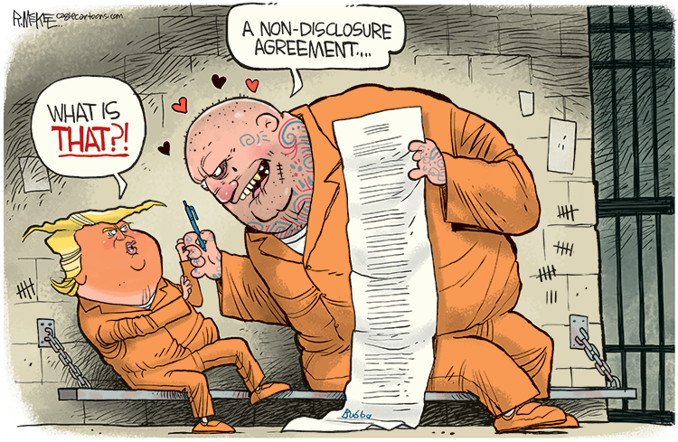 Stormy Daniels, Donald Trump, Political Cartoonists, Hush Money, Indictment, Pat Byrnes, Bob Englehart, Bill Day, Visual Storytelling, Public Opinion, Anonymous Cartoonists, News Commentary, Cartoons with Message, Single-Issue Voters, Pseudonyms, Impeachment Trial, Patriotism, Marjorie Taylor Greene, Newspaper Cartoons, Editorial Cartoonists