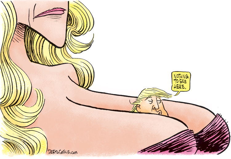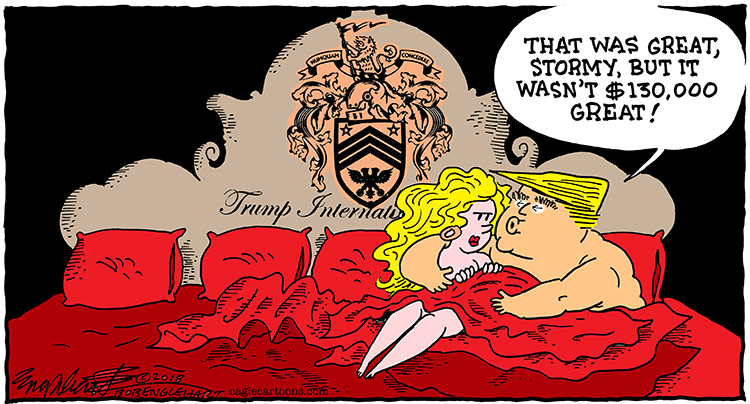 [00:00:00] Daryl Cagle: Hi, I'm Daryl Cagle and this is The Caglecast. We're all about political cartoons, and today our topic is Stormy Daniels and Donald Trump. As you all know, Trump had sex with porn Star, Stormy Daniels, while his wife Melania was at home pregnant. And Trump later paid $130,000 in hush money to Stormy to keep her quiet about their tryst.