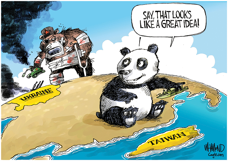 Daryl Cagle: I hear watching the news here about how China is picking up the Russian narrative about them really fighting NATO and not fighting Ukraine, and a lot of the Russian arguments about Ukraine, supportive of Russia. But I haven't seen that. It seems to me like they avoid the topic.