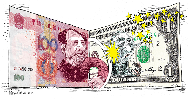 Daryl Cagle: this. Oh, oh yes. I'm going to. This is a very, broad topic that all the cartoonists pick up in China, all the political cartoonists about the West, thinking that China's going to collapse, which is interesting because I certainly don't get that. From my perspective in the West, the news we get is about how China's a growing threat and their economy's growing and you know, in 15 years they're gonna be the biggest economy in the world and watch out for this.